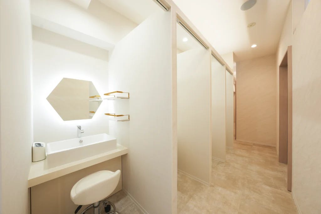 患者さまご自身でチェックインしていただき、パウダールームで準備が整ったら呼び出しボタンを押していただく仕組みで、他の患者さまと顔を合わせることなくスムーズに診察室までご案内できます。また、診察室や施術室も個室となっており、プライバシーに配慮した造りとなっております。