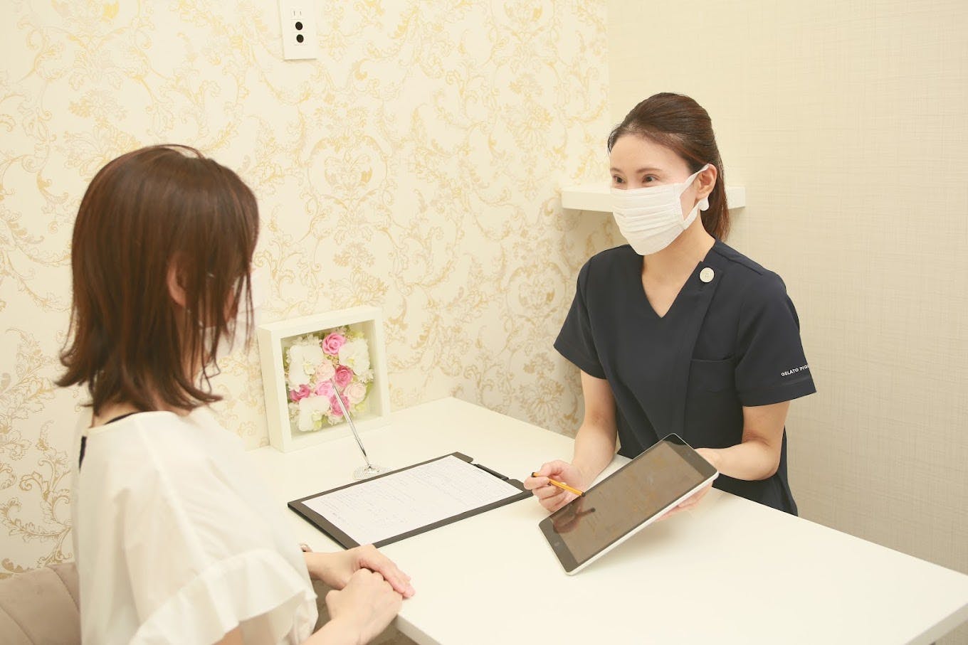 カウンセリングで安心感を得るカウンセリングで、どこのパーツを何回のコースでやるかなどのヒアリング。あとは医療脱毛ということで、アレルギーの有無、現在飲んでいる薬、病気のことなど、健康診断を受ける前くらいの確認があります。