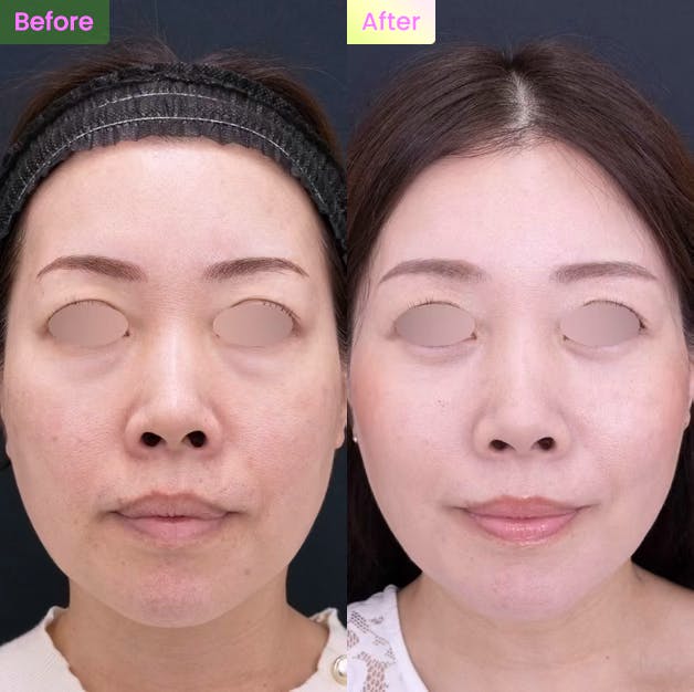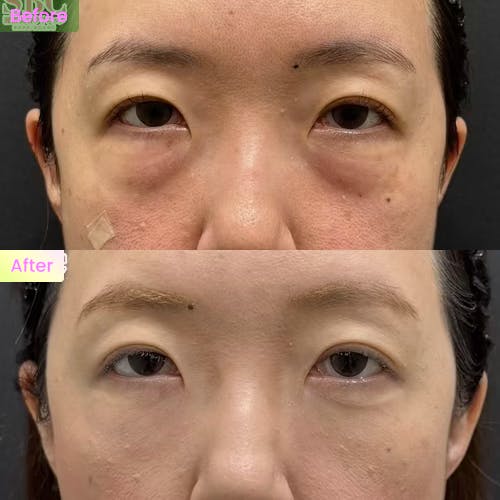 - 施術のメリットは、ゴルゴラインやクマに効果があり、自然な仕上がりが続くこと。1回の脂肪注入で、見た目の印象が大きく変わります。